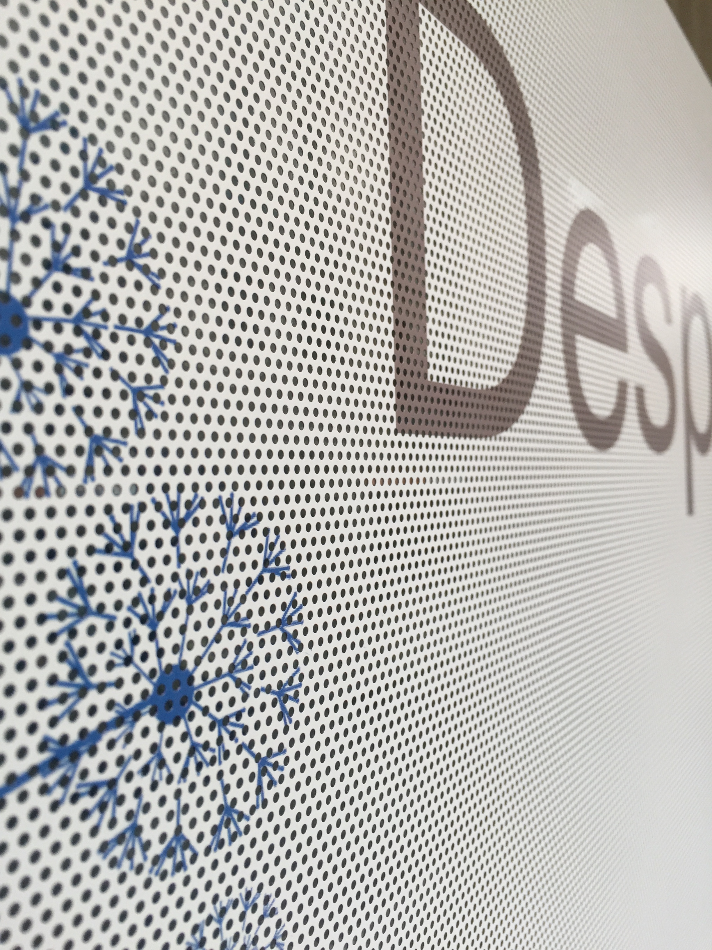 < Tornar a "Serveis"Augmenta la teva visibilitat de forma senzilla amb vinil microperforat. S'utilitza sovint en vidres, fent servir la superfície del cristall com superfície imprimible, i així no perdre la visió de l'interior a l'exterior.