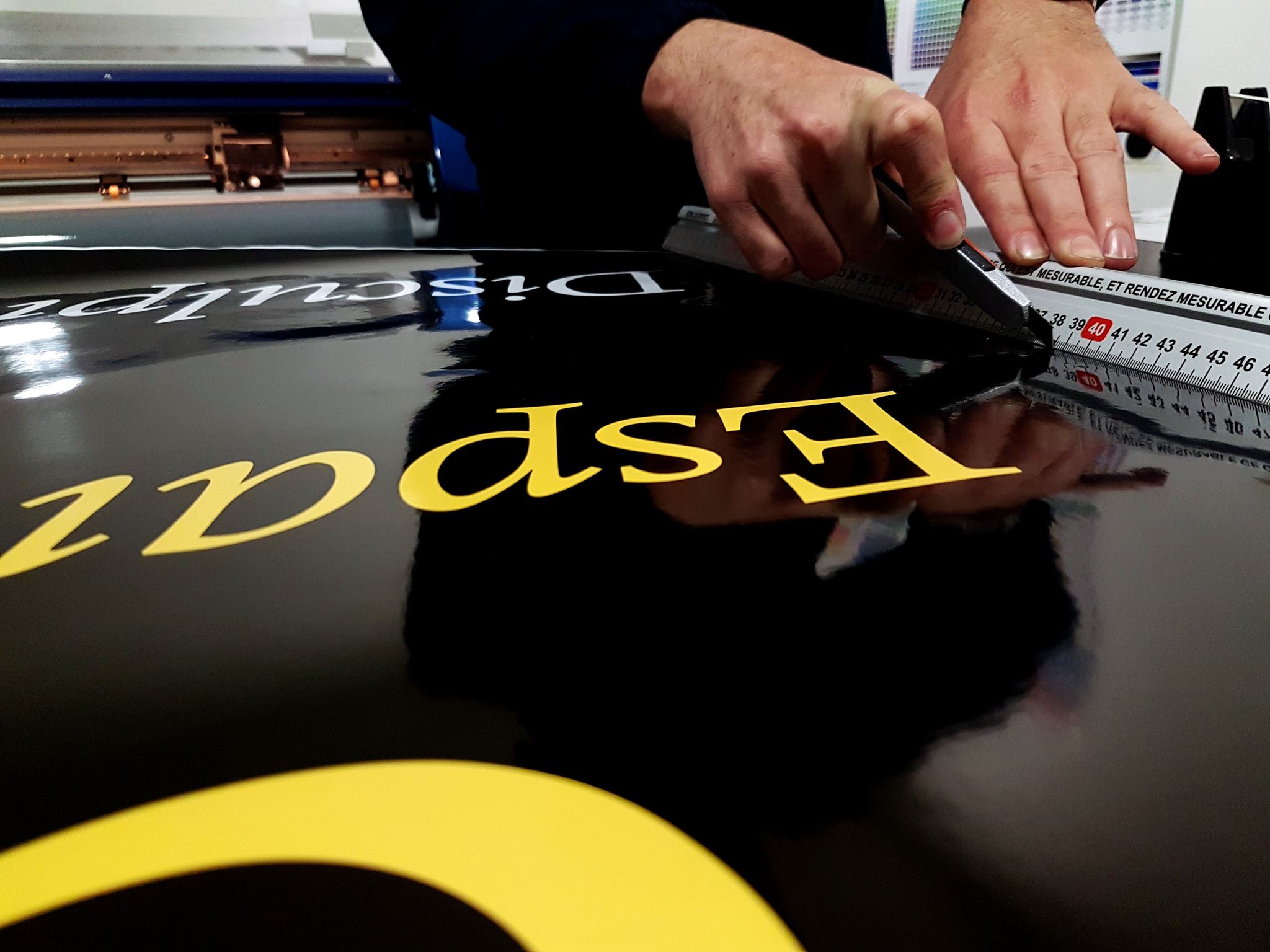 Impresión sobre vinilo blanco o transparente, al cual se le aplica tinta en la superficie, obteniendo así el diseño que se requiera. Su uso es indicado tanto en interior como en exterior y se puede usar en cualquier superficie lisa, cristales, suelos, muebles, escaparates, paredes, coches, etc.